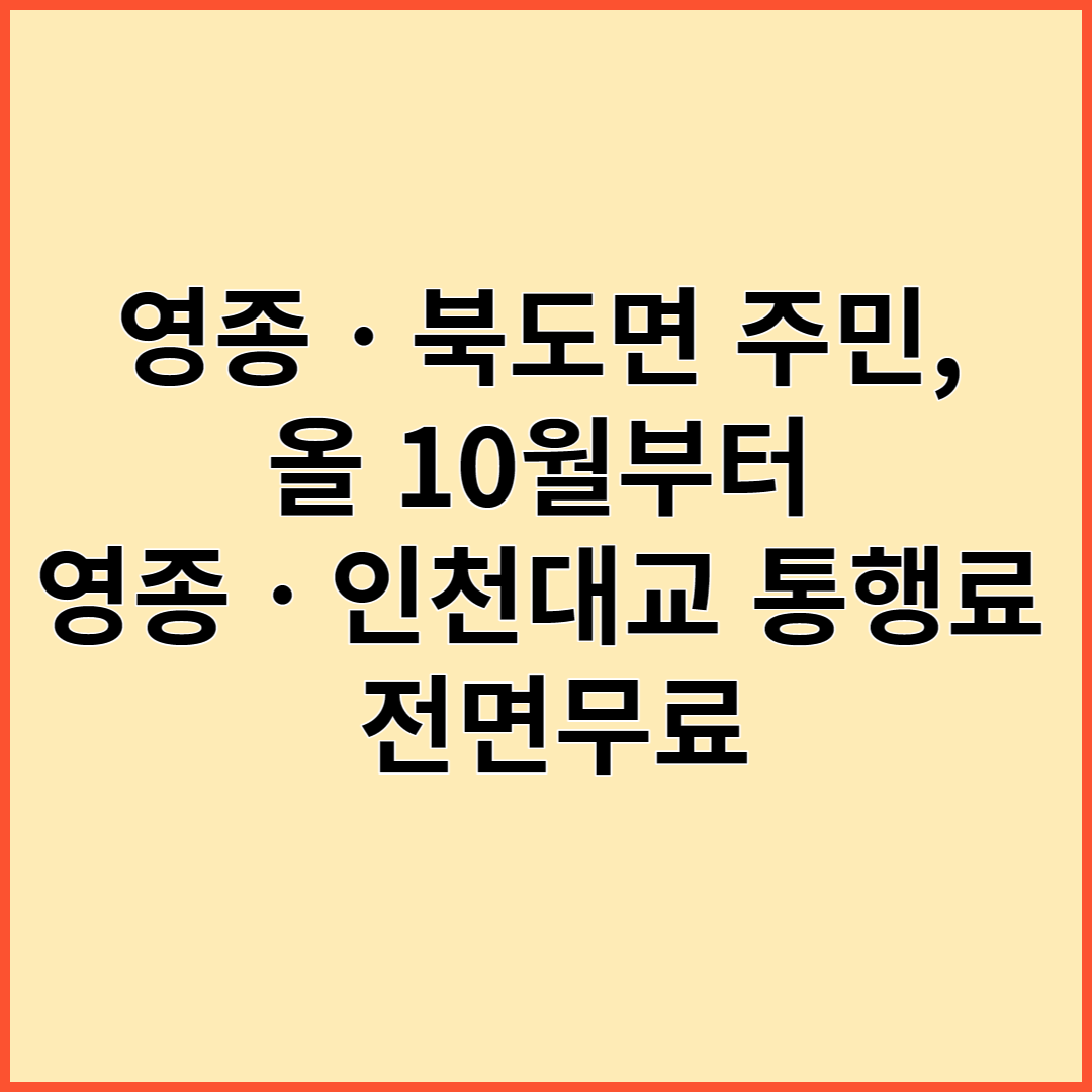 올 10월부터 영종ㆍ용유지역과 옹진군 북도면 거주 주민들은 차량으로 영종대교와 인천대교를 오갈 때 통행료 부담 없이 무료로 이용할 수 있게 된다.